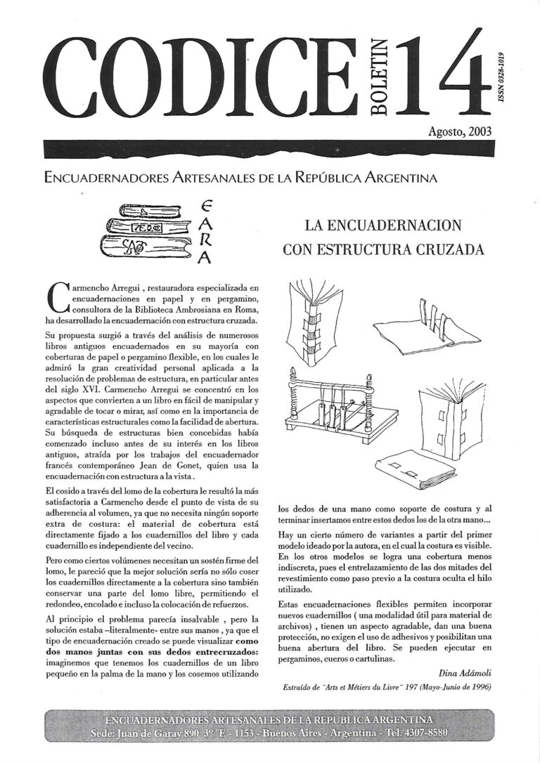 La encuadernación con estructura cruzada / Arts et Métiers du Livre, (trad. Dina Adámoli) Nuevos rumbos en las artes del
