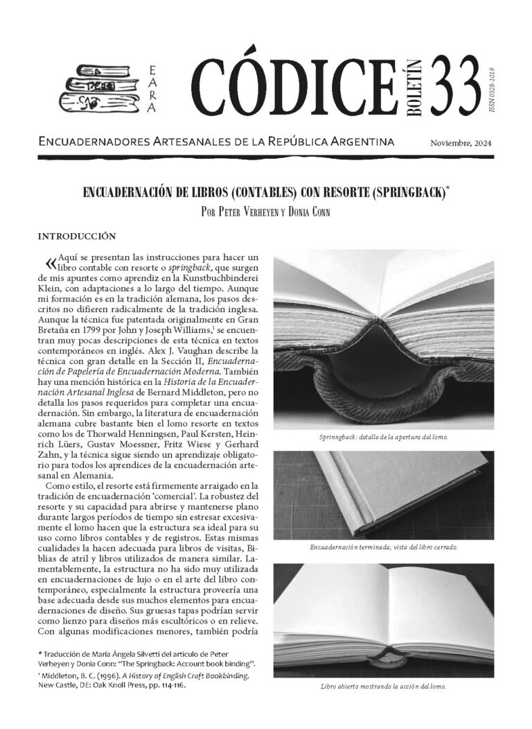 Encuadernación de libros (contables) con resorte (springback) / Peter Verheyen, Donia Conn Editorial / María Ángela Silvetti Algunas encuadernaciones del
